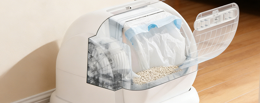 Táto inteligentná samočistiaca podstielka pre mačky je navrhnutá pre domácnosti, ktoré vlastnia domáce zvieratá, so zameraním na praktickosť a pohodlie, aby bolo každodenné spravovanie podstielky jednoduchšie a spoľahlivejšie. Produkt používa ako hlavnú štruktúru kompozitné materiály PP a ABS, ktoré ponúkajú stabilitu, odolnosť a ľahké čistenie. Aj pri dlhodobom používaní si dokáže zachovať dobrý vzhľad a funkčný výkon. Vnútorná štruktúra podstielky je optimalizovaná tak, aby zaisťovala prirodzený a pohodlný zážitok pre mačky pri vstupe a používaní, čím sa znižuje odpor citlivých mačiek pri pohľade na nové zariadenie.