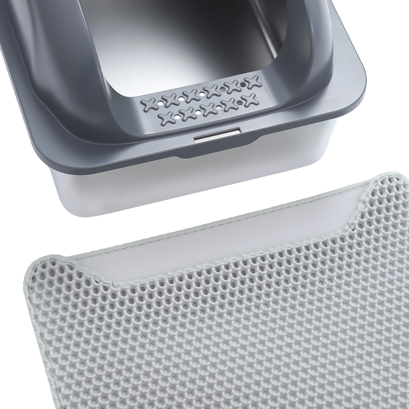 Aby sa zabránilo rozsypaniu odpadu, je odpadkový box vybavený vysokou priehradkou. Aj keď sa mačka počas používania pohybuje alebo škriabe, podstielka je účinne umiestnená v boxe, čo bráni jej vyneseniu a udržiava okolité prostredie čisté. To je obzvlášť výhodné pre aktívne mačky, pretože dizajn s vysokou priehradkou účinne zabraňuje znečisteniu podlahy rozsypaným stelivom, čím sa znižuje problém s čistením.